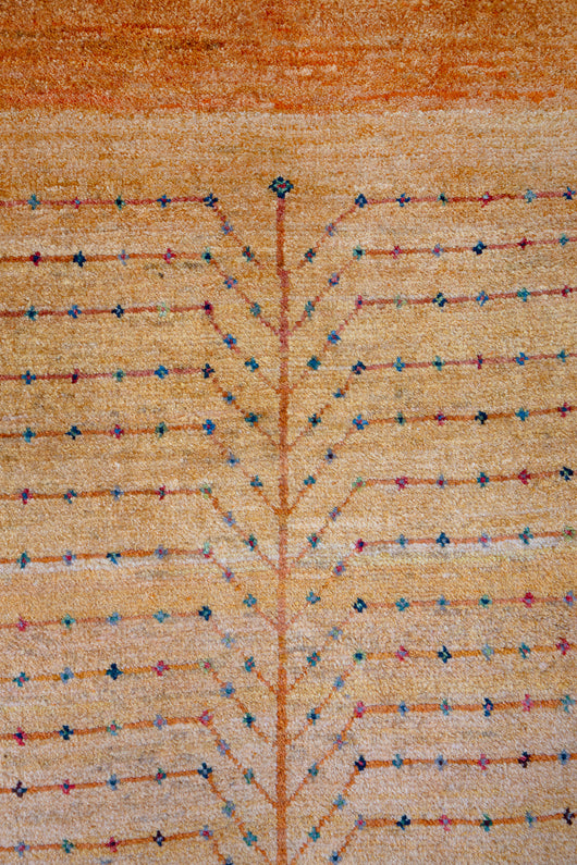 A cheerful amber and honey toned tree-of-life Gabbeh. Hand-knotted and plant dyed, this is the perfect way to brighten a small space!