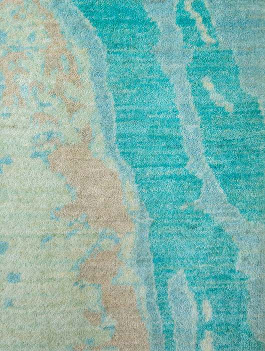 A distinctively Key West take on the ancient art of rug making! This bespoke rug is inspired by aerial views and nautical maps of the lower Florida Keys. If you have ever flown over our island chain, you'll recognize the striking shifts in color that the water makes as the depths change. The design spans from Big Pine Key down through Key West. It captures the nearshore waters and lacy island shapes that create this place we call home.