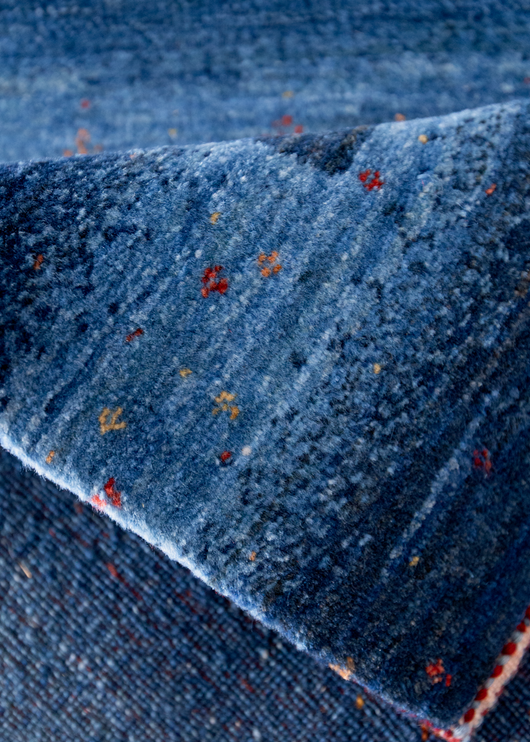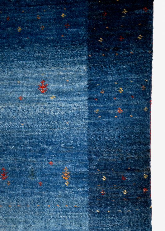 A twinkling blue Gabbeh with colorful details.